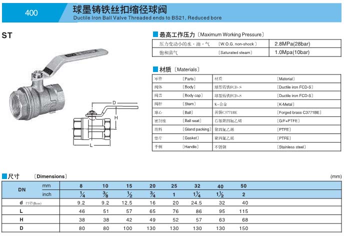 球墨铸铁丝扣缩径球阀